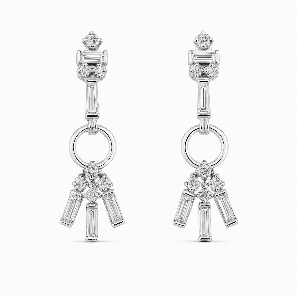 18 KT Gold Contemporary Baguette Diamond Earrings