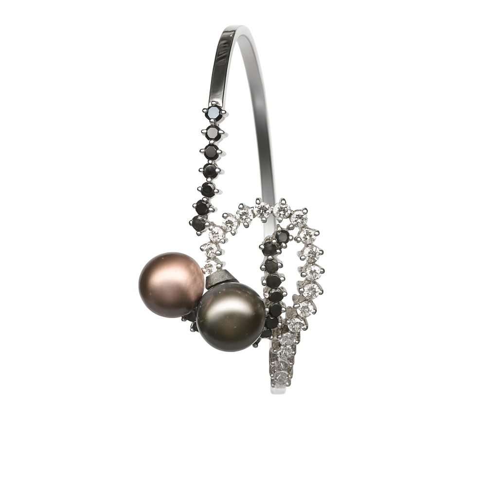 This elegant Contemporary Diamond Pearl Gold Bracelet combines modern aesthetics with the enduring beauty of pearls and diamonds set in 18 KT gold. It’s a lovely option for women who appreciate both trendy and classic fine jewelry designs.