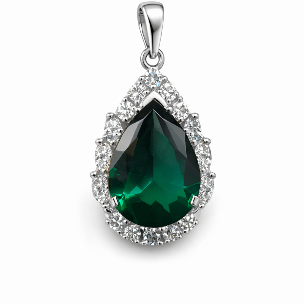 Add a hint of regal beauty with the 18 KT Gold Diamond Emerald Teardrop Pendant, showcasing a deep emerald hue complemented by sparkling diamond accents. Crafted from fine 18 KT gold, this pendant radiates sophistication and timeless charm.