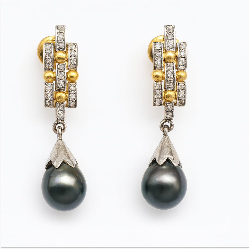 Be the first to review “18 KT Gold Diamond Pearl Drop Earrings”