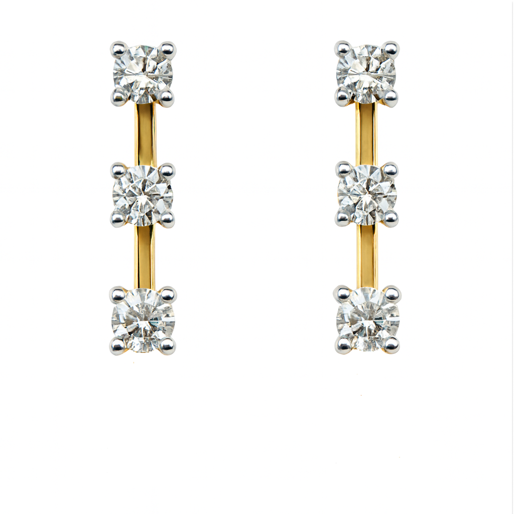 Present a refined style with these 18 KT Gold Diamond Solitaire Line Earrings, showcasing a solitary line of brilliant diamonds that provide a touch of subtle elegance. Great for daily wear or formal events, they embody contemporary luxury.