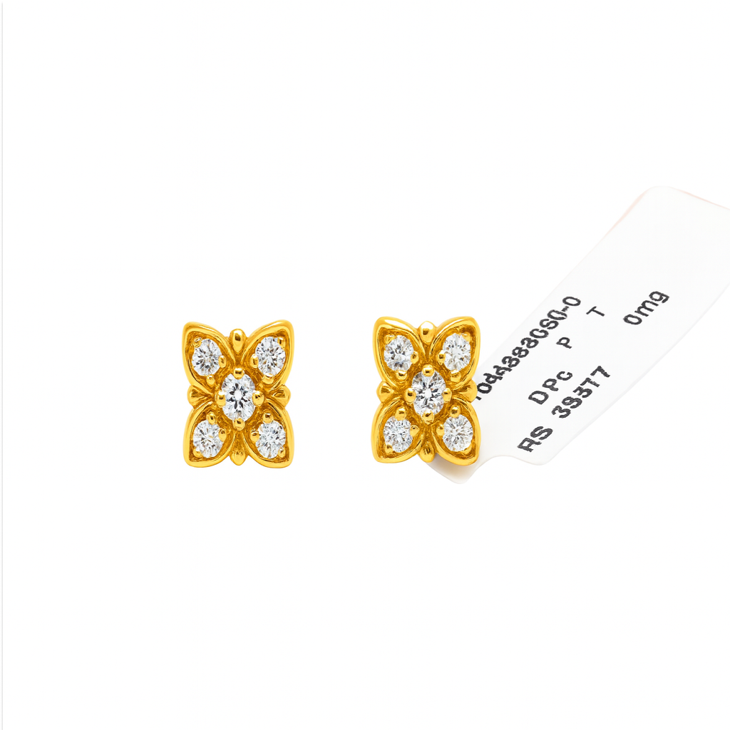 Bring a delicate touch to your fashion with these 18 KT Gold Floral Diamond Stud Earrings, featuring brilliant diamonds in an elaborate floral design. Ideal for both daily wear and festive occasions, they reflect enduring beauty.