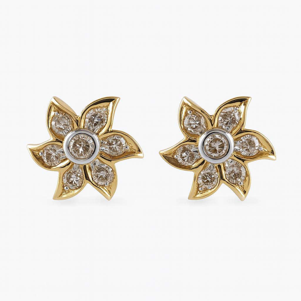 Bring a sense of natural charm to your outfit with these elegant 18 KT gold floral diamond stud earrings, crafted with a delicate floral design.Featuring brilliant diamonds, these gold diamond floral studs are just right for everyday elegance and timeless fashion.