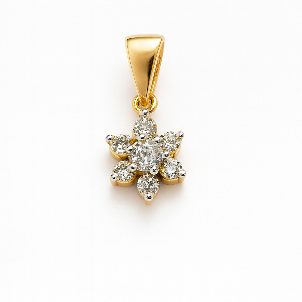 18 KT Gold Natural Diamond Cluster Floral Pendant