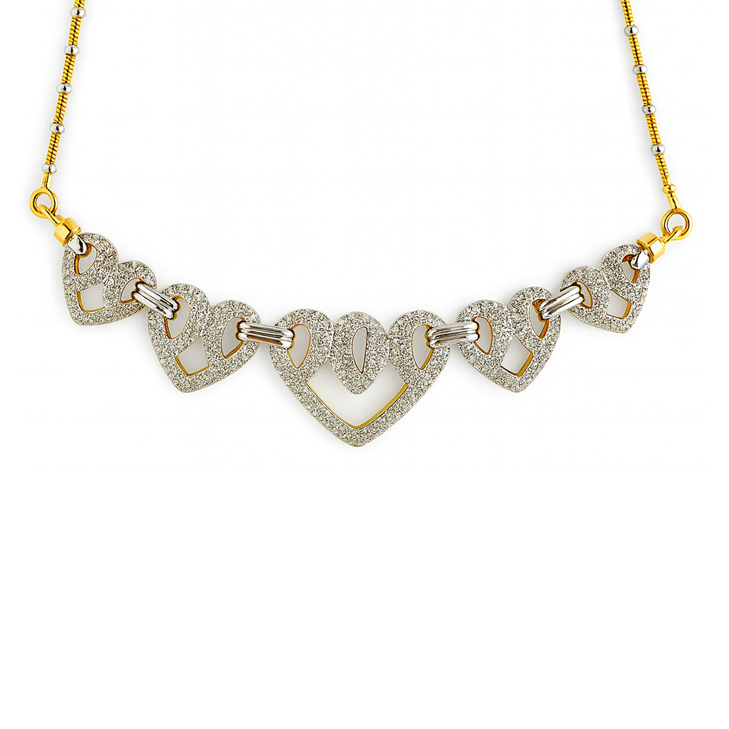 The Heart Diamond Gold Necklace radiates romantic charm, made from 18 KT gold and featuring a stunning heart-shaped diamond design that sparkles beautifully. It’s an ideal choice for gifting or conveying love, making a timeless and elegant statement in jewelry.
