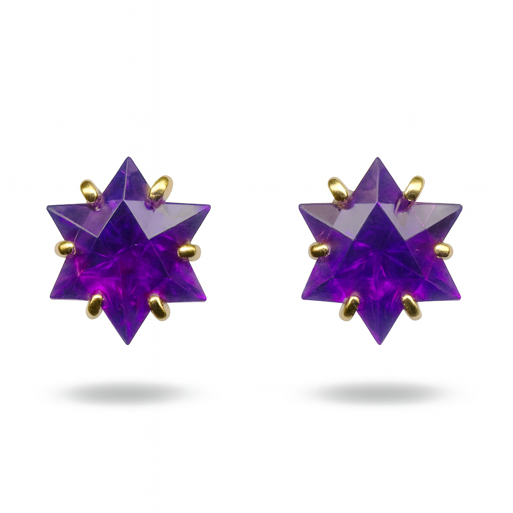 18 KT Gold Star-Cut Amethyst Stud Earrings